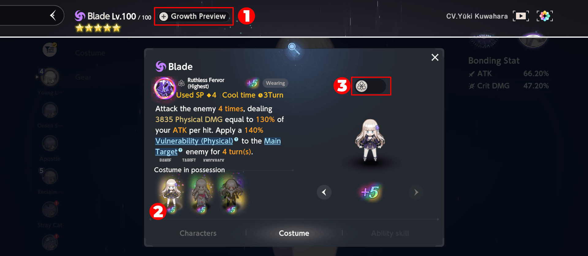 - The character gains additional stats based on the Potential Liberation progress of that specific bonded costume.