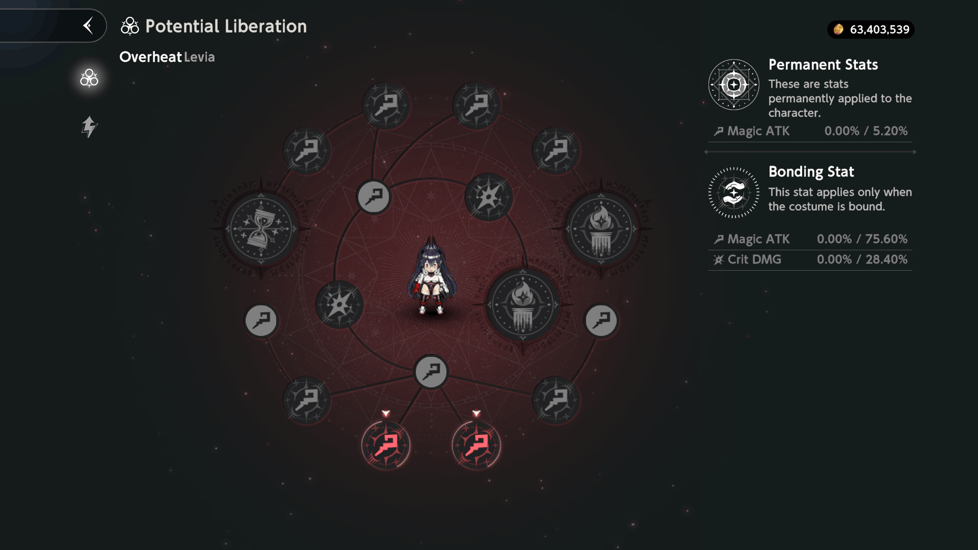 Potential Liberation (often called "Pots") is the system used to upgrade a costume's performance and a character's stats.