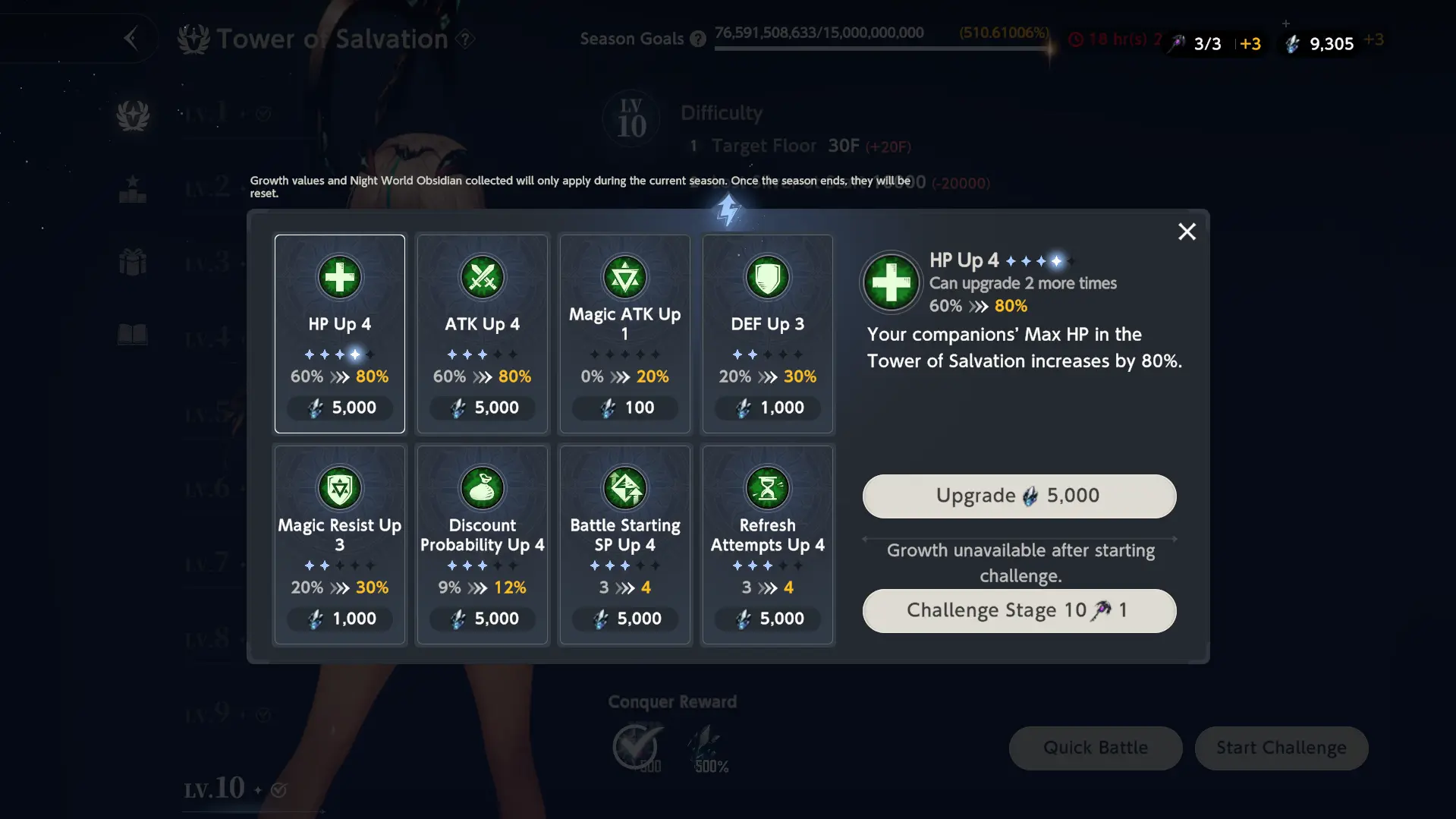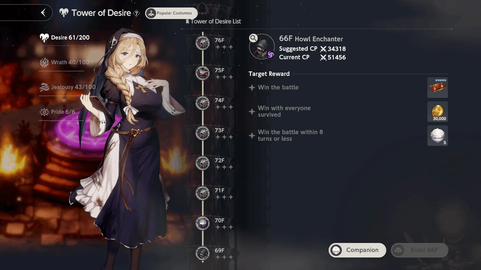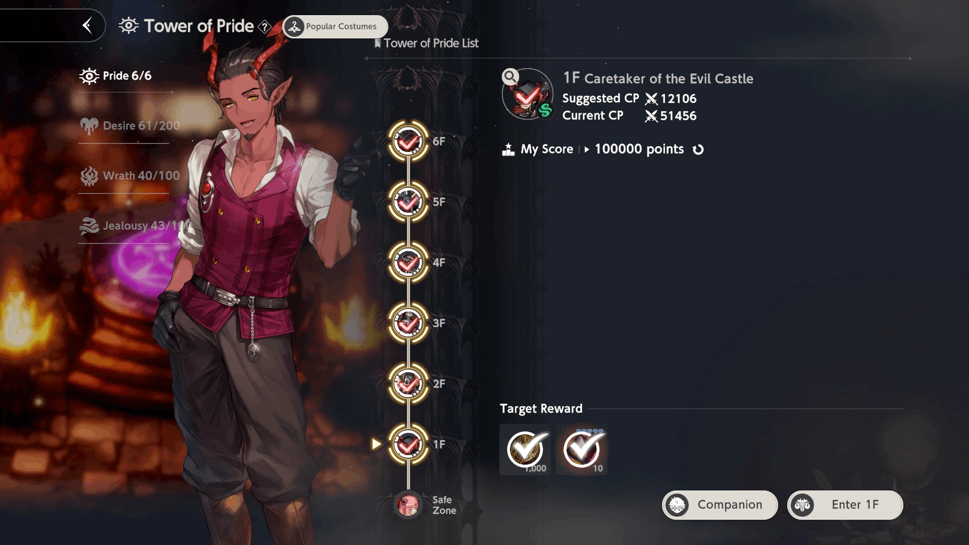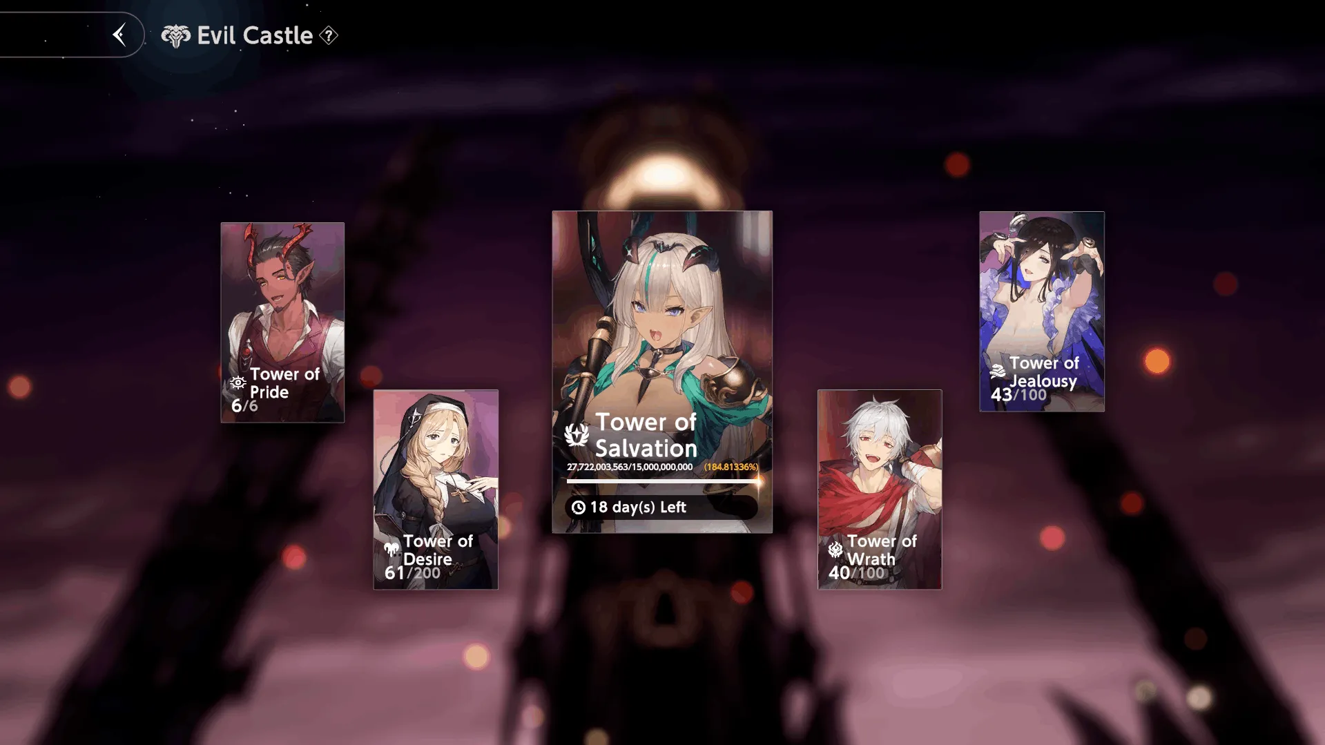 | Tower of Pride | Tower of Desire | Tower of Salvation | Tower of Wrath | Tower of Jealousy |