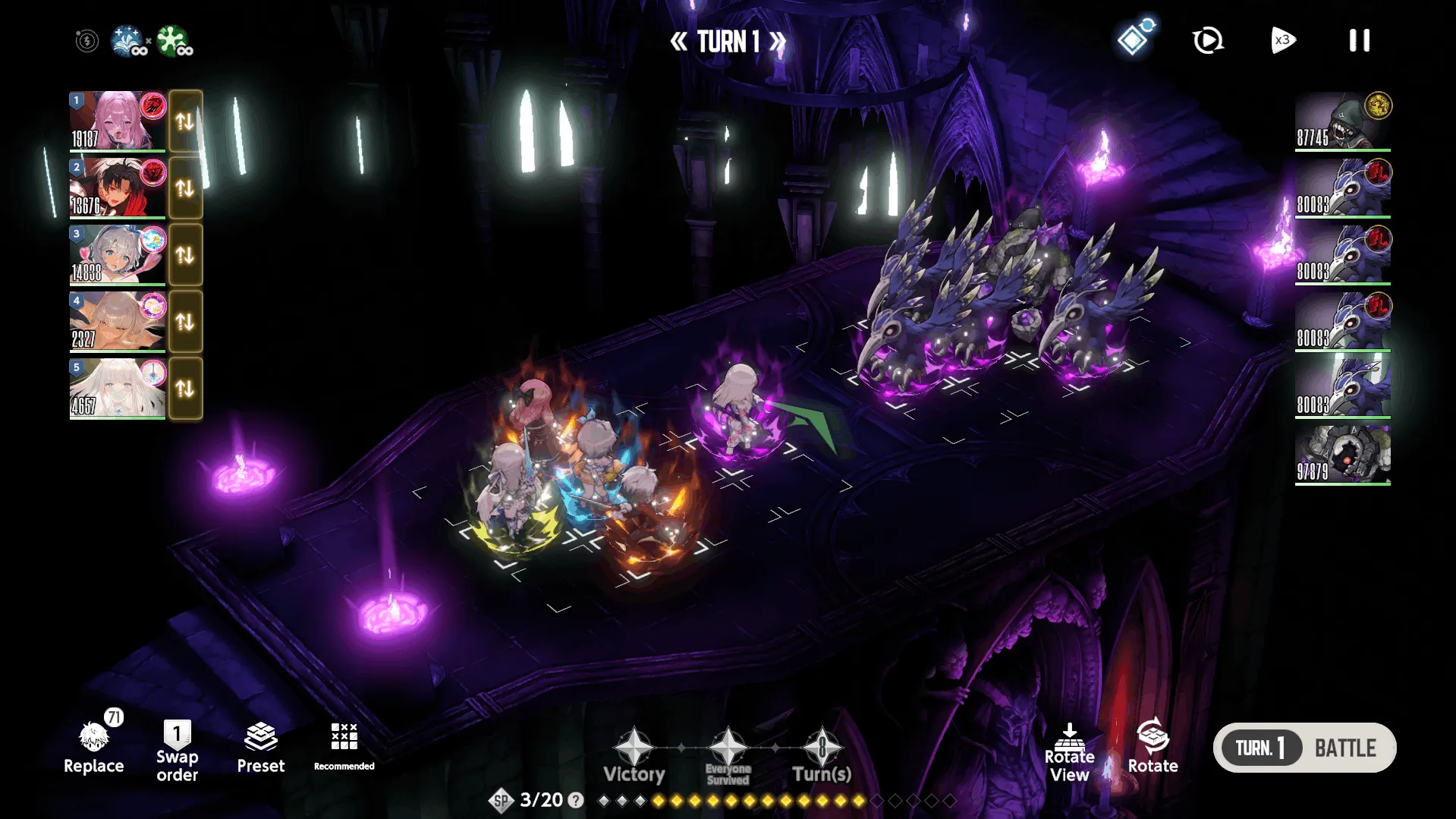 - Progression: To advance, you just need to win the battle. Completing the 2 optional challenges per floor grants extra resources.