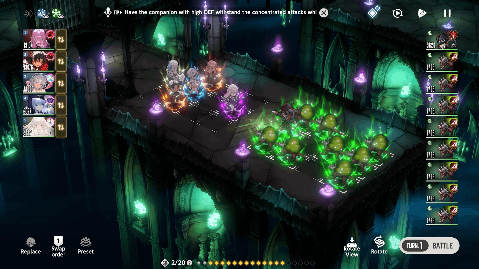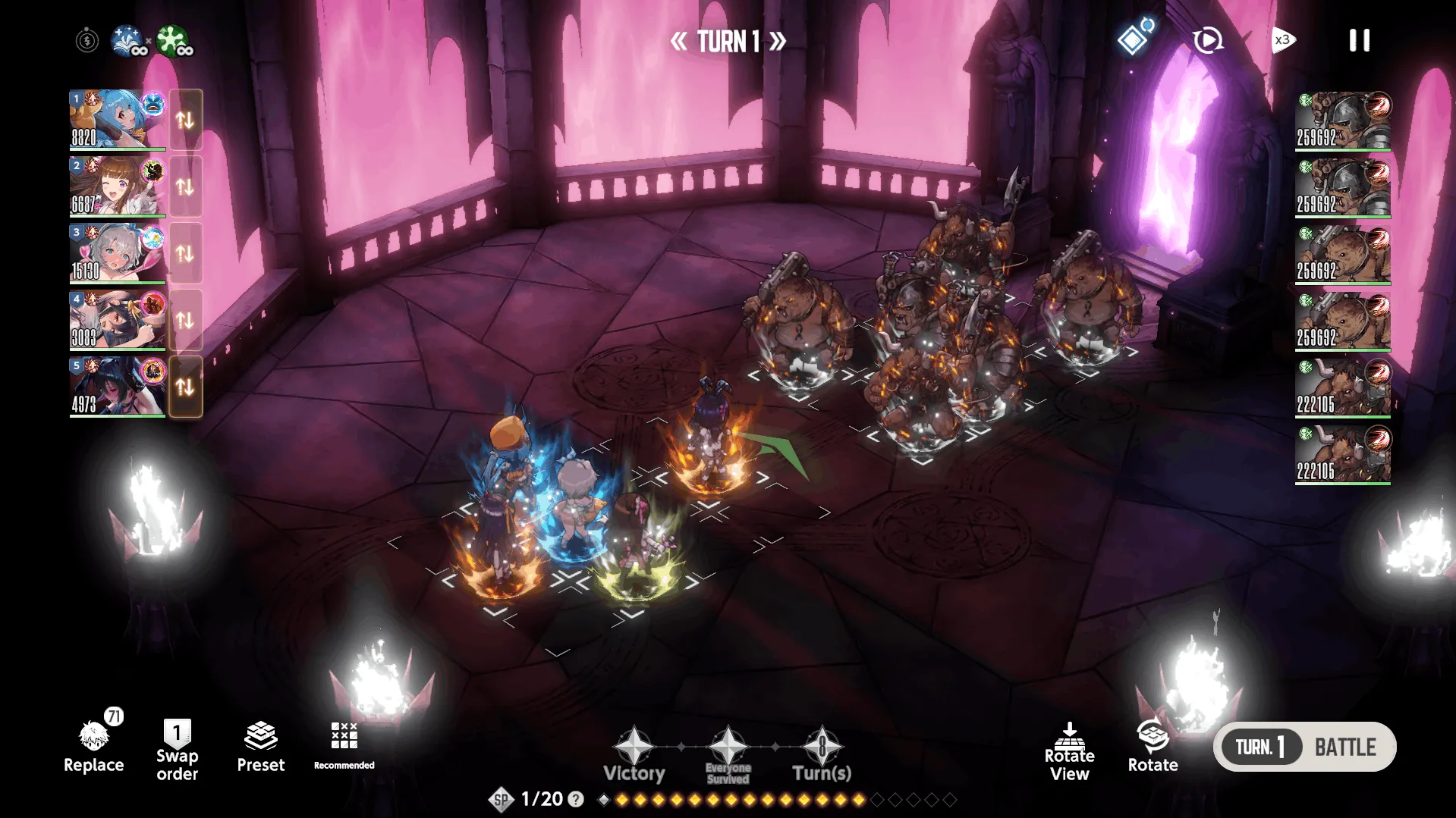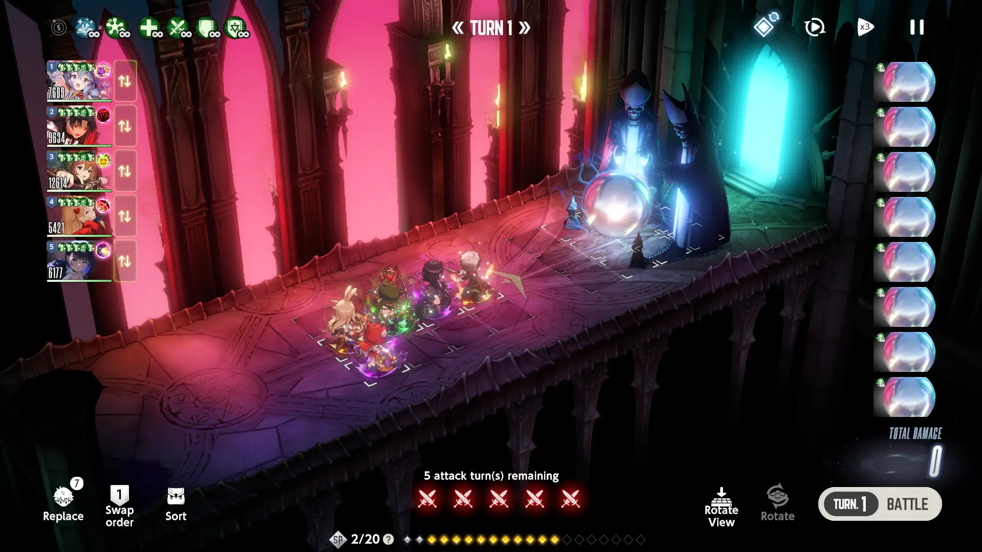 - You have attack 5 turns to deal as much damage to the Crystal in a 3x3 grid as possible.