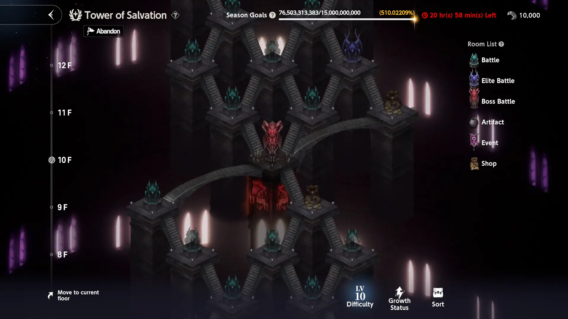 - Battle Environment: Starting from Floor 11, additional effects are added for you (and / or enemy) for the next 10 floors.
