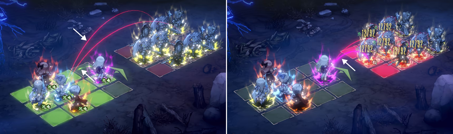 - Enemy layout can require DPS on different column for better AoE coverage